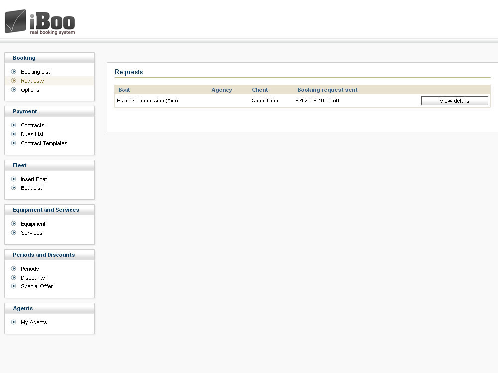 Requests lista prikazuje popis upita vaših klijenata. Na listi se mogu naći upiti koje ste vi kreirali, ali i upiti koje vam šalju partneri i razni internet portali-korsnici sistema. Ukoliko ste iBoo implementirali na vaše web stranice upiti postavljeni na njima će se također naći na requests listi. Klikom na listu moguće je pregledati detalje upita te ga pretvoriti u opciju ili odbaciti.
